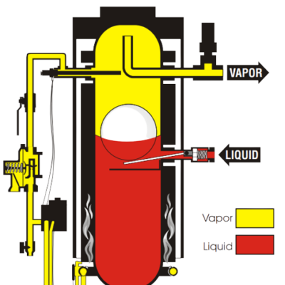 El vaporizador Ransome RH Series consta de un recipiente a presión vertical con clasificación ASME que se calienta directamente mediante un quemador de gas. El quemador consume una pequeña porción de vapor del recipiente para desarrollar el calor necesario para la vaporización. A medida que el líquido ingresa al recipiente, comienza a vaporizarse a medida que se absorbe calor del intercambiador de calor tibio. Esto hace que la temperatura del vapor disminuya. El interruptor de temperatura de funcionamiento monitorea la temperatura del vapor y le indica a la válvula de control de gas que encienda el quemador cuando la temperatura del vapor cae por debajo del punto establecido (120 grados F).